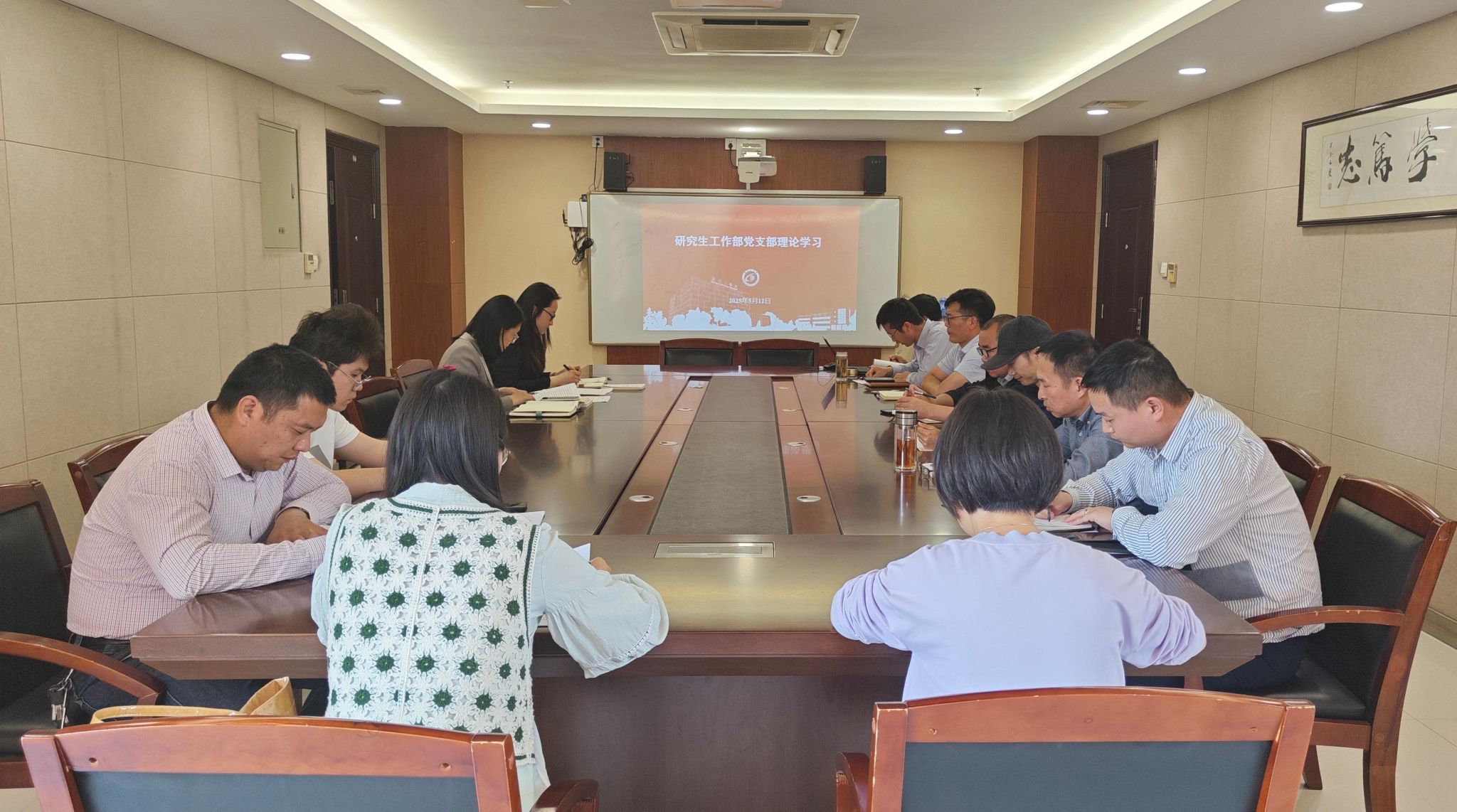 5月12日下午,在行政楼428会议室,党委研究生工作部党支部召开深入贯彻中央八项规定精神学习教育暨5月份政治理论学习会,围绕“深入贯彻中央八项规定精神”、“党风廉政建设”、“爱国主义教育”等展开学习。党委研究生工作部部长、研究生院院长、学科建设办公室主任许伟主持,支部全体成员参加学习。